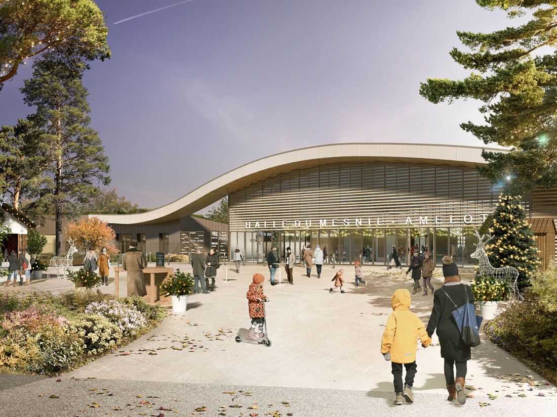 Conception d'une halle polyvalente, d'un complexe sportif, d'une maison des jeunes et de deux parcs, à Le Mesnil-Amelot.